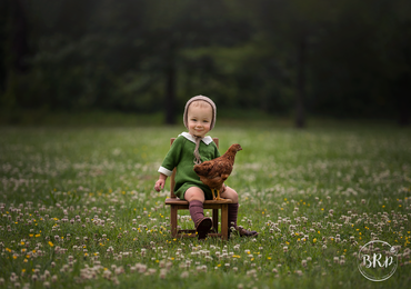 I ordered William an outfit over two months ago and it never arrived...I'm currently on the hunt for a new one so I can do a shoot with him and his chickies too. I'll update with his pictures when I find one...I may even completely go nuts and try for all four kids and some chickens together! Anyone know where I can order some dusty blue knitted overalls in size 3T? 😜